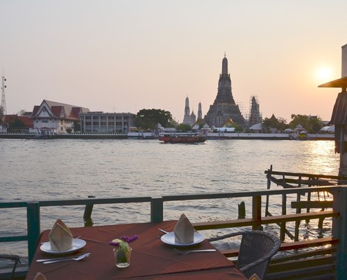 川沿いのテラス席でのんびり行き来する船を見下ろし、ワットアルンを眺めながら美味しいタイ料理をいただく。